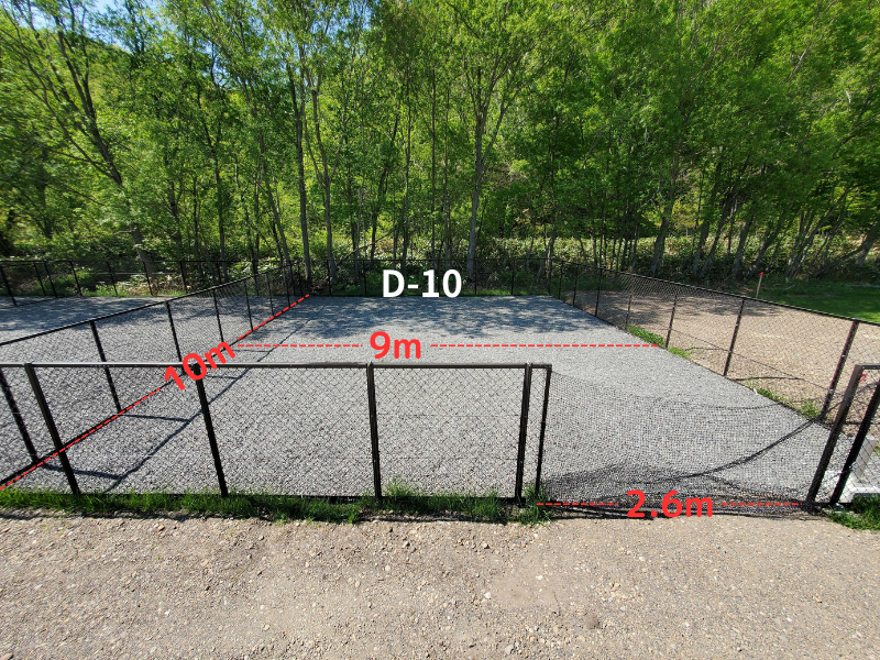 全面玉砂利なので雨の日でも汚れにくいのが特徴、すぐ後ろが木々なので日陰になりやすく涼しめです。