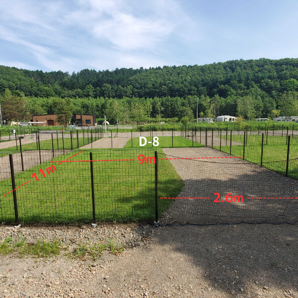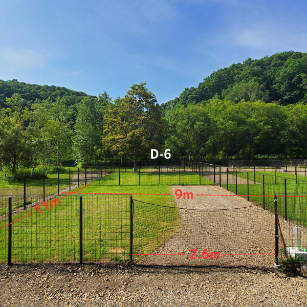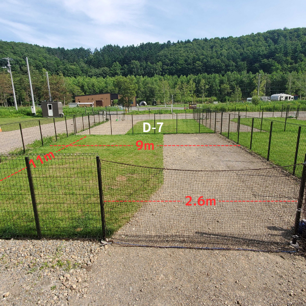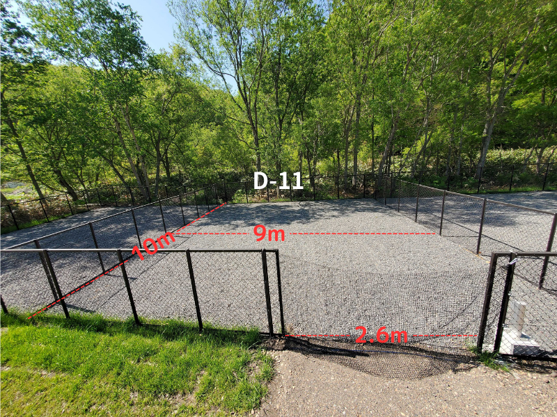 すみっこが人気の区画、隣がフリーオートのスペースなので犬連れでないグループとの合同キャンプも可能です。